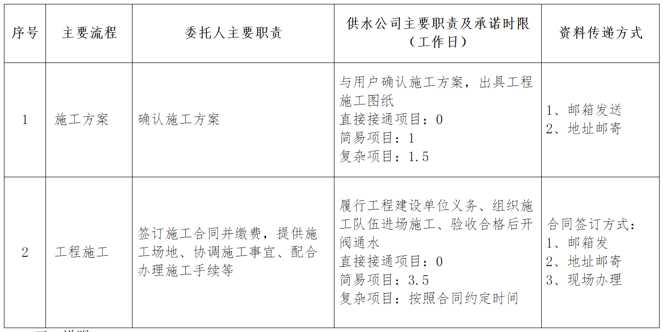 2、工程設(shè)計(jì):設(shè)計(jì)承諾時(shí)限不包含用戶獲得用水方案后,與供水公司溝通反饋等環(huán)節(jié)。