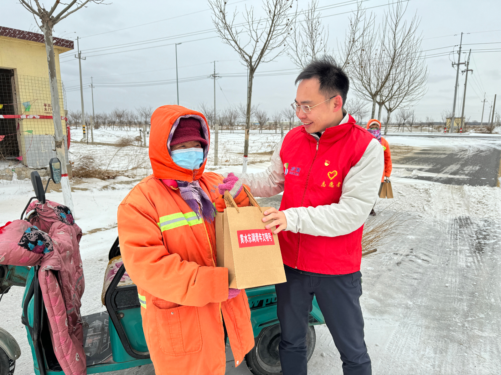 環(huán)衛(wèi)工人是生活中最平凡的人,也是最不可或缺的人。他們每天踏著晨曦去,披星戴月歸,冒酷暑頂嚴寒,始終戰(zhàn)斗在保障環(huán)境衛(wèi)生工作的第一線。青年志愿者準備了溫暖的手套和美味元宵,送到環(huán)衛(wèi)工人手中,同時也送上了元宵節(jié)的祝福,感謝他們對城市環(huán)境所做出的貢獻,希望他們在初春中感受到一份溫暖。
