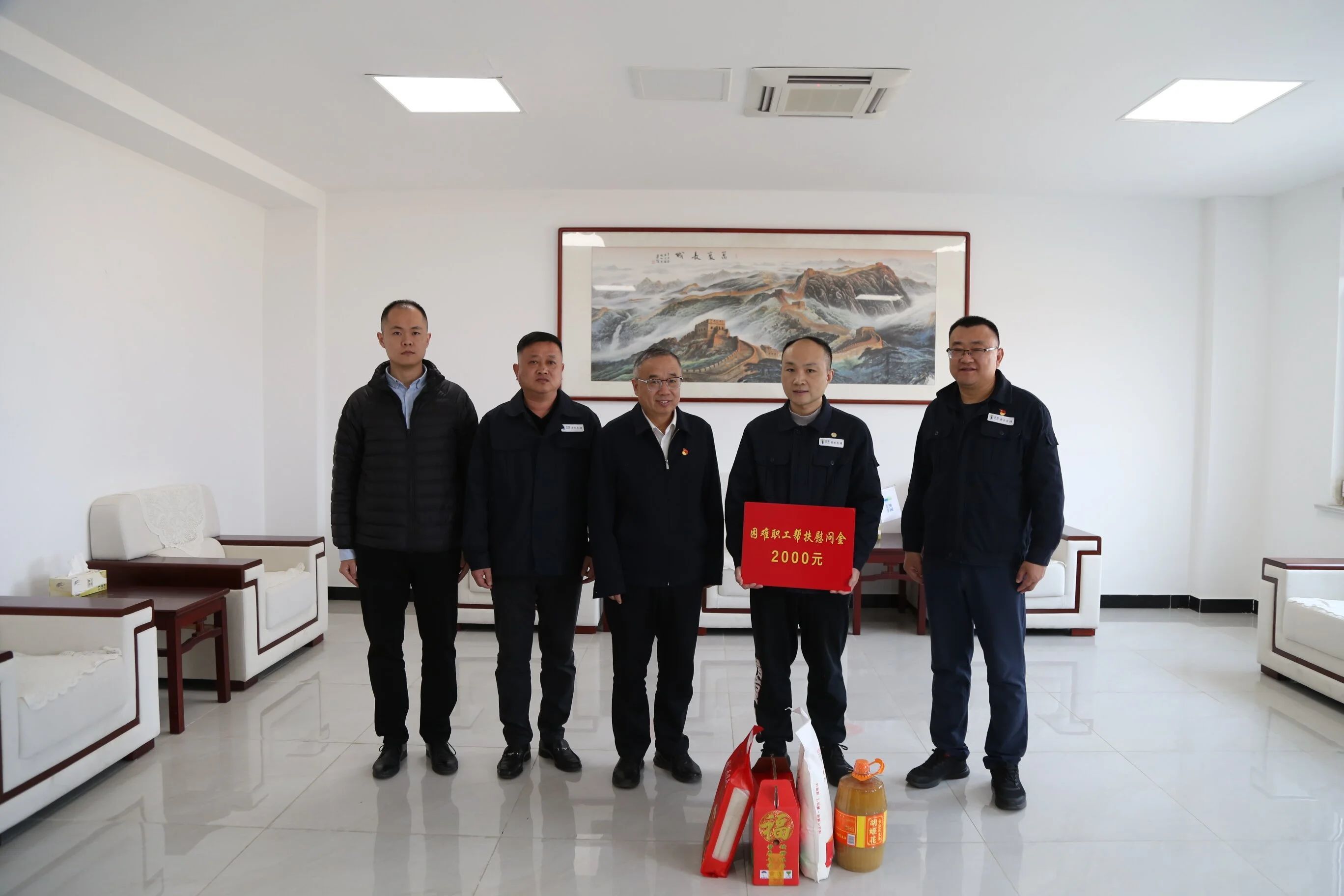 “目前工作生活上有什么困難?家里父母身體怎么樣?要提振信心積極面對,把日子過好?!本渚涫巧?、字字皆關心。慰問組與困難職工親切交談,詳細詢問當前生活和工作情況,鼓勵職工保持樂觀向上的心態(tài),積極面對生活中的困難,并為職工送上米、面、油等慰問品和慰問金,送上新春祝福。