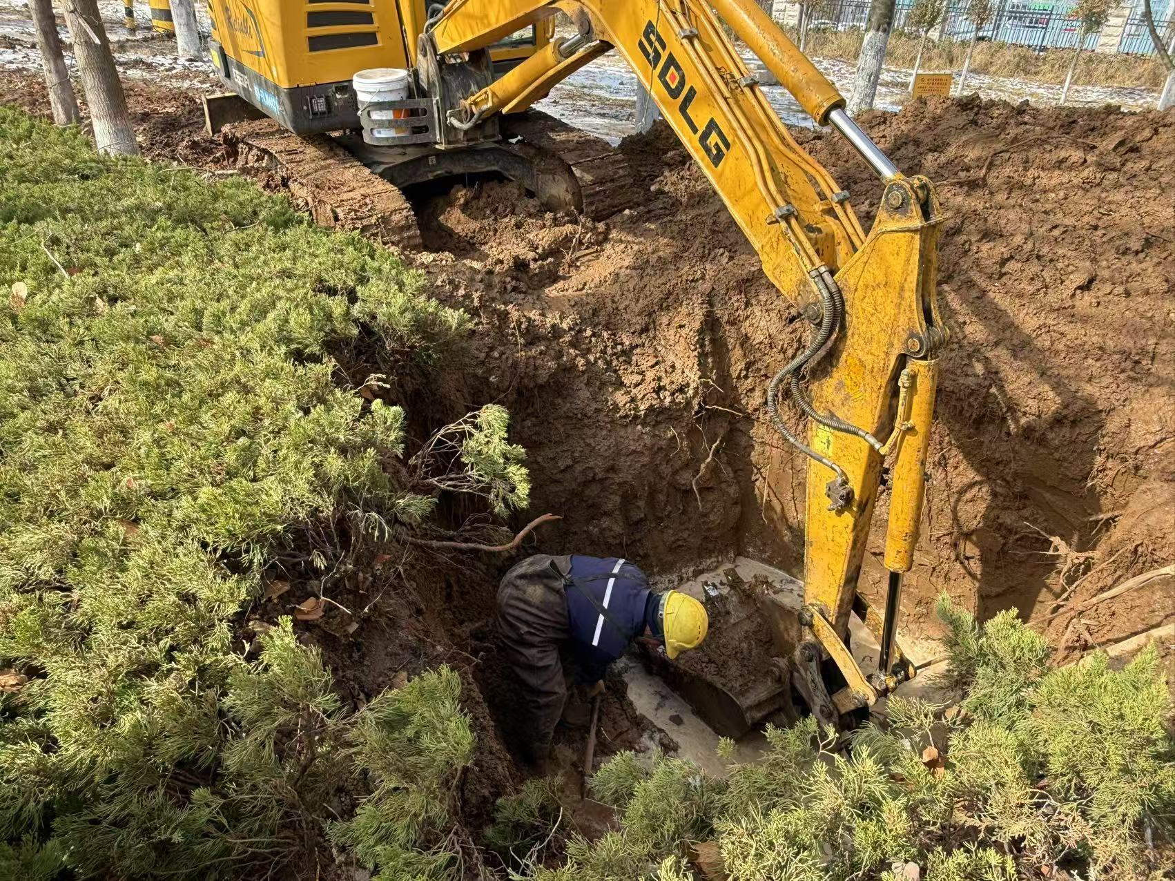 3月2日晚,嬴城水務(wù)巡察人員發(fā)現(xiàn)萊城大道重工東門主管道地段存在路面積水情況,經(jīng)現(xiàn)場查看,初步確認(rèn)管線凍裂漏水。夜晚持續(xù)降雪,氣溫降至零下4°C,為避免路面積水結(jié)冰影響周邊企業(yè)居民生產(chǎn)生活用水,維修人員決定連夜掘地?fù)屝?。冰冷刺骨的泥水中,維修人員持續(xù)奮戰(zhàn)十余個小時將漏水管線修復(fù)完畢,跑出了雪夜搶修的“水發(fā)速度”。