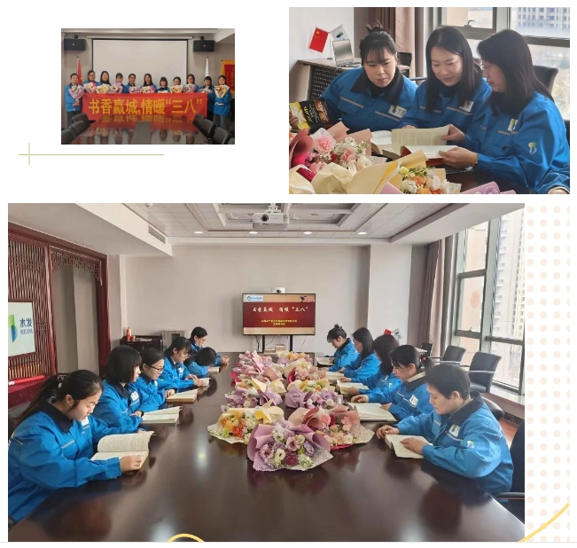 山東嬴城水務(wù)有限公司組織開展“書香嬴城 情暖三八”婦女節(jié)閱讀分享會。會上花香彌漫,沁人心脾,廣大女職工紛紛挑選自己喜愛的書籍,享受閱讀樂趣,品讀書中墨香,并結(jié)合生活工作實際進行好書分享,暢談收獲和體會。
