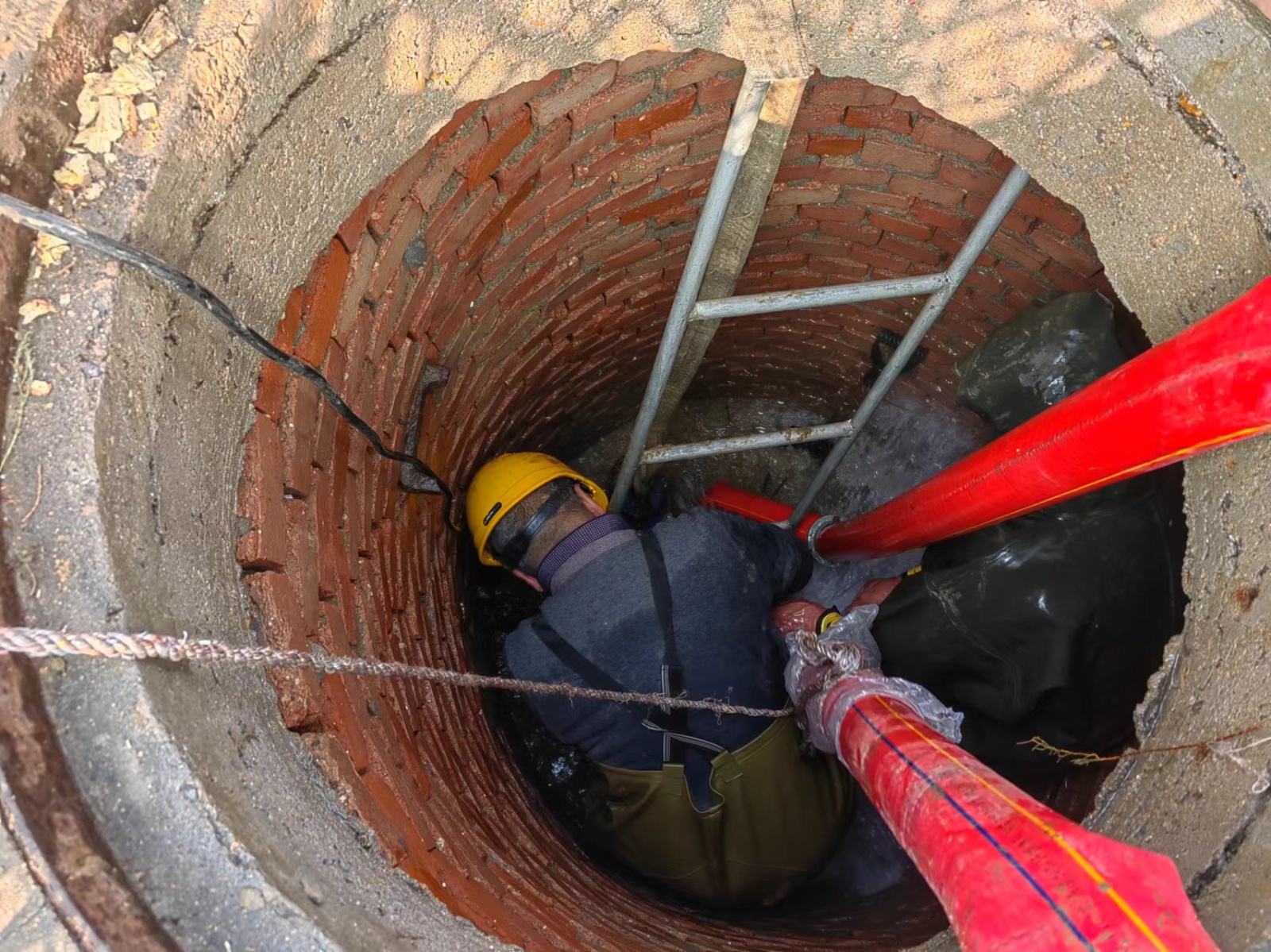 漏水現(xiàn)場位于海豐路與S309省道交叉口附近,漏水管道為DN800PE供水主管道,噴出的水柱高達10余米,由于主管道水壓高、漏水量大,搶修現(xiàn)場一片泥濘,為盡快修復受損管道,縮短停水時間,搶修隊緊急調拔兩臺大功率水泵同時排水,搶修隊員不顧天氣寒冷、作業(yè)空間狹小,泡在齊腰深的冰水里,接力作業(yè)、無縫配合,搶時間、拼進度,快速排查漏水原因及損壞點、更換配件補漏,經過近4個小時的全力搶修,到下午2時成功修復了受損管道,全面恢復供水,解決了群眾用水之急。
