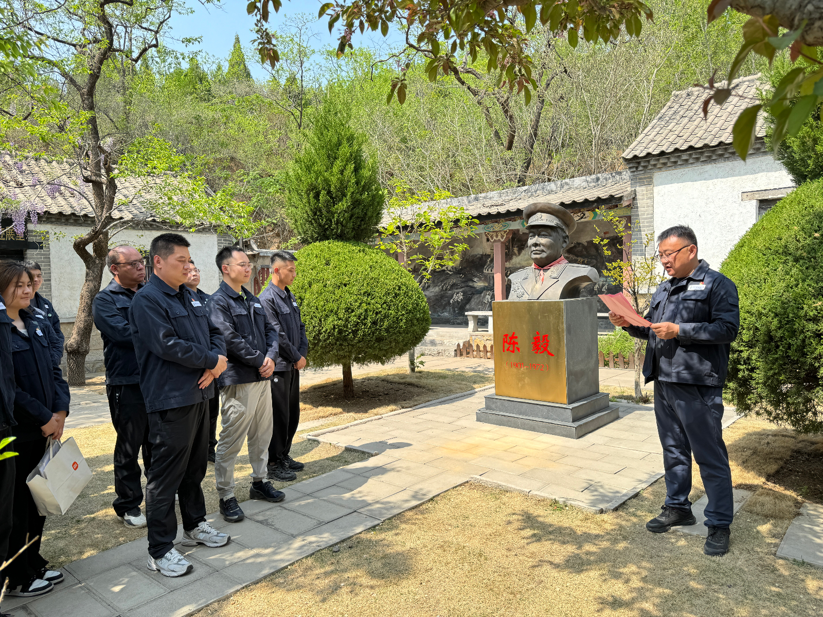 參觀結(jié)束后,申勇同志在陳毅紀念館以“賡續(xù)紅色基因,永葆初心使命”為主題,為全體人員講述了一堂深刻的現(xiàn)地黨課,重溫革命先輩在抗戰(zhàn)時期的英勇事跡。他指出,“忘記過去,就意味著背叛”,作為新時代的我們,手握歷史的接力棒,拼搏奮斗正當時,更要堅守初心,擔當時代使命,不管在什么崗位,都應(yīng)當把紀律挺在前面,時刻繃緊紀律之弦、筑牢作風之堤,把青春奮斗融入黨和人民的事業(yè)。大家紛紛表示,通過現(xiàn)地黨課教育、沉浸式參觀“紅色場景”的方式,是一次思想上的再洗禮、是紀律意識的再提升,是擔當作為的再出發(fā),要以此為契機,嚴格要求自己,不斷筑牢理想信念,在心中始終敲響正風肅紀的警鐘,爭當“學紀、知紀、明紀、守紀”的表率。